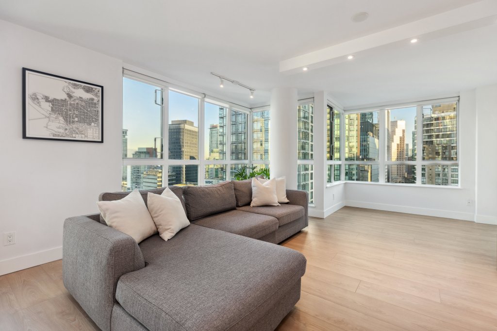 One of the standout properties we photographed recently was a stunning penthouse perched high above the city. Floor-to-ceiling windows frame an uninterrupted view of the skyline, with the North Shore mountains standing majestically in the background. In the evening, golden hues from the setting sun reflect off the glass towers, creating a dazzling cityscape. The open-concept living space is bathed in natural light, while modern furnishings and high-end finishes add a sophisticated touch. The spacious terrace offers the perfect spot for a morning coffee or an evening cocktail, with the city lights twinkling below.